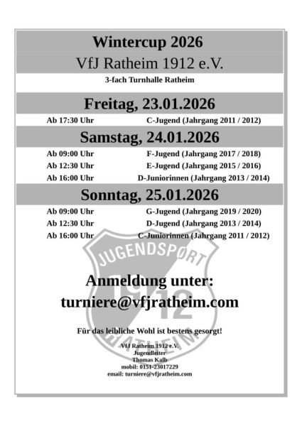 Auch in diesem Jahr wird der VfJ Ratheim wieder ein Hallenturnier vom 23.01.-25.01.2026 in der Dreifachturnhalle Ratheim (Wallstr./Mittelstr.) veranstalten.